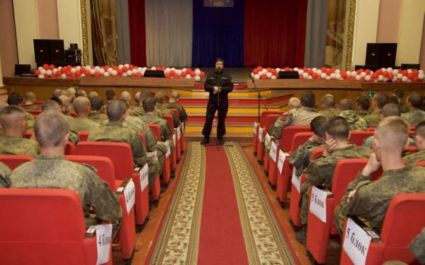 В Брянске во Дворце культуры Железнодорожников прошла встреча с военнослужащими. Перед ними выступили член Комиссии по вопросам духовно-нравственного и патриотического воспитания детей и молодежи Совета при Президенте РФ по межнациональным отношениям, лектор Всероссийского общества «Знание» Алексей Вайц и Представитель Правительства Республики Дагестан в Брянской области Алим Султанов.