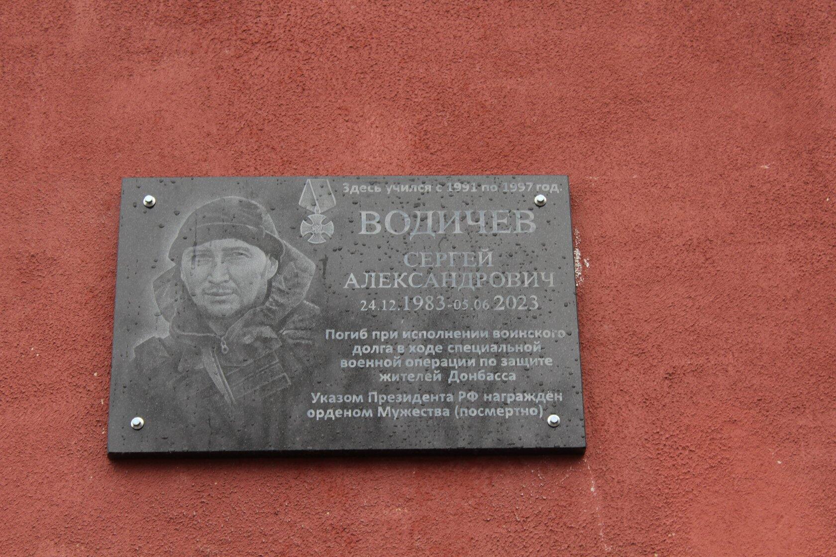8 ноября в средней школе № 4 им. С.П.Лоскутова состоялось торжественное и значимое мероприятие – открытие мемориальной доски выпускнику школы Сергею Александровичу Водичеву, погибшему 5 июня 2023 года в ходе специальной военной операции по защите жителей Донбасса в с.Водяное Ясиноватского района. Гвардии рядовой С.А.Водичев награжден орденом Мужества (посмертно).