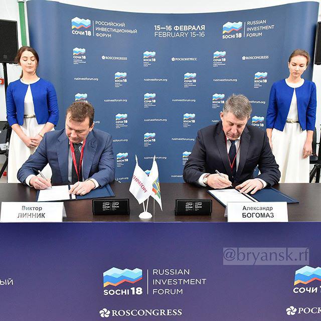 Сегодня же на форуме руководитель региона и Президент АПХ «Мираторг» Виктор Линник на Российском инвестиционном форуме в Сочи подписали инвестиционное соглашение.