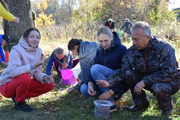 12 октября в Выгоничском районе Брянской области прошла акция «Вместе поможем лесу», организованная администрацией ГКУ «Выгоничское лесничество» совместно с коллективом районной газеты «Российская нива». На объявление поучаствовать в сборе желудей откликнулись 20 волонтеров Лопушской средней школы им. писателя Н.М. Грибачева во главе с ее директором Русланом Лукутиным. Вооружившись ведрами и лукошками, зеленый десант отправился в дендрологический парк областного значения «Красный Рог», который славится не только своими дубравами, но и экзотическими древесными и кустарниковыми видами: бархат амурский, орех маньчжурский, сирень мохнатая и другими редкими для брянских лесов представителями флоры. Участковый лесничий Юрий Цыбанков и инспекторы леса Николай Горшков и Михаил Фомин известными лишь им тропами повели сборщиков к заветным дубравам. Этот год выдался неурожайным на желуди. Поэтому работники брянского леса и обратились к волонтерам помочь им заготовить семена редкого дуба для того, чтобы весной высадить их на специальных питомниках.Ребята и взрослые, даже никогда не занимавшиеся «охотой за желудями», сумели собрать их почти 50 килограммов! Этого будет достаточно, чтобы посеять и вырастить саженцы на нескольких гектарах. Участники акции не только хорошо потрудились, но и с удовольствием побродили по утопающему в золоте осенней листвы лесу. И теперь они гордятся, что смогли приобщиться к его возрождению. Ведь из каждого собранного желудя сначала прорастет, а со временем и зашумит могучей кроной красный дуб. (0+)
