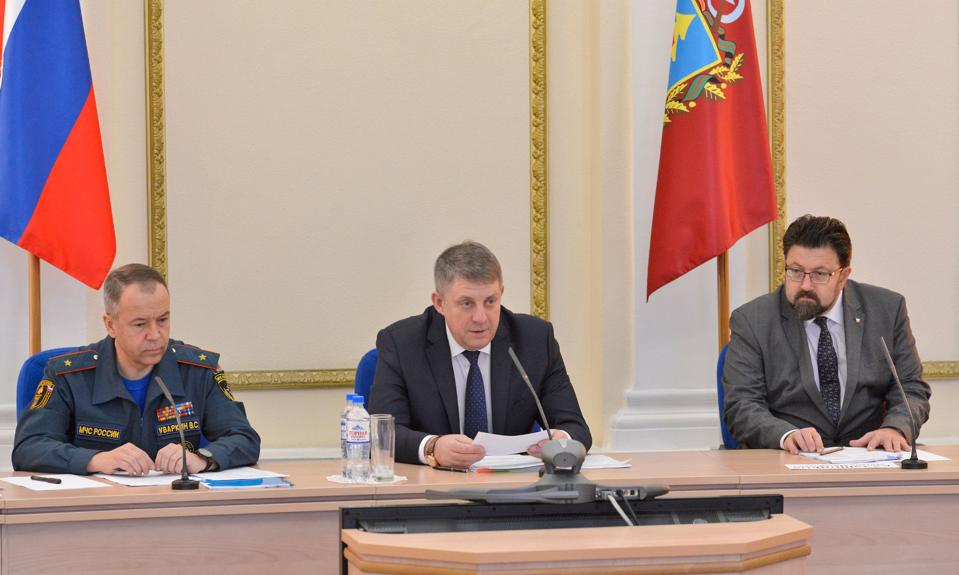 В правительстве Брянской области под председательством губернатора состоялось заседание комиссии по предупреждению и ликвидации чрезвычайных ситуаций. Собравшиеся обсудили меры по предупреждению чрезвычайных ситуаций в период весеннего половодья, задачи по подготовке функциональных и территориальной подсистемы РСЧС к пожароопасному сезону 2019 года. Первый заместитель начальника Главного управления МЧС России по Брянской области, полковник внутренней службы Алексей Мурзин отметил, что в целях реагирования на чрезвычайные ситуации в период весеннего половодья создана группировка сил и средств: более 5000 человек, более 1000 единиц техники, 110 плавсредств, 13 воздушных судов. Создан резерв финансовых и материальных ресурсов. Оповещение населения об угрозе или о возникновении чрезвычайных ситуаций спланировано с использованием региональной автоматизированной системы централизованного оповещения и системы экстренного оповещения. (12+)