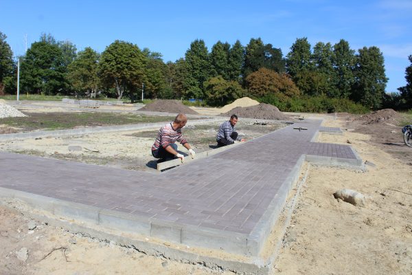 В настоящее время выложены бордюрным камнем тротуарные дорожки, площадки, парковка и подъездной путь. На пешеходных дорожек уже уложена тротуарная плитка. (0+)