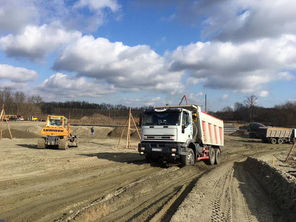 В настоящее время ведётся устройство земельного полотна, планировка откосов, монтаж водопропускной трубы. Также строители заливают бетон под ростверк для мостовой опоры №5. На опоре №1 эта работа уже выполнена.