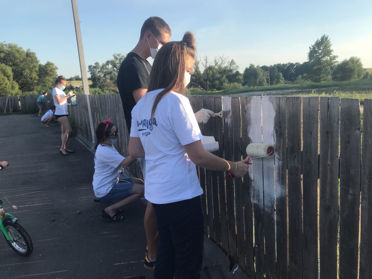 Активисты Дятьковского местного отделения партии «Единая Россия» совместно с администрацией Березовского сельского поселения приступили к благоустройству территории игровой площадки в деревне Березино. После уборки мусора молодежь начала работу по окраске деревянного ограждения корта.