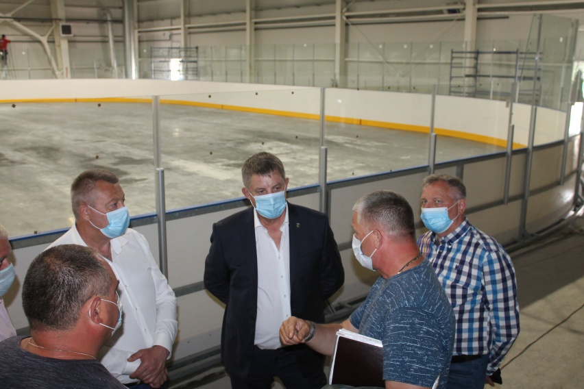 С опережением графика ведутся работы и на ледовом Дворце. Здесь оборудуют 4 раздевалки, буфет и комнату для фитнеса. Скоро зальют лёд и наладят работу котельной. Для поддержания ледовой арены в идеальном состоянии, купили японскую специализированную машину за 8 млн рублей. На объекте установлены светильники, монтируют вентиляционное и звуковое оборудование, пожарную сигнализацию, устанавливают окна, двери и многое другое.