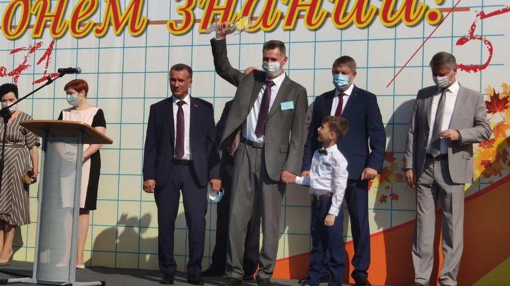 На торжественной линейке ученики предуниверсария выступили с напутствием перед сегодняшними первоклашками. В торжественной обстановке руководитель брянской компании «Стройдело» Михаил Кабанов вручил директору новой школы ключ от учебного заведения.