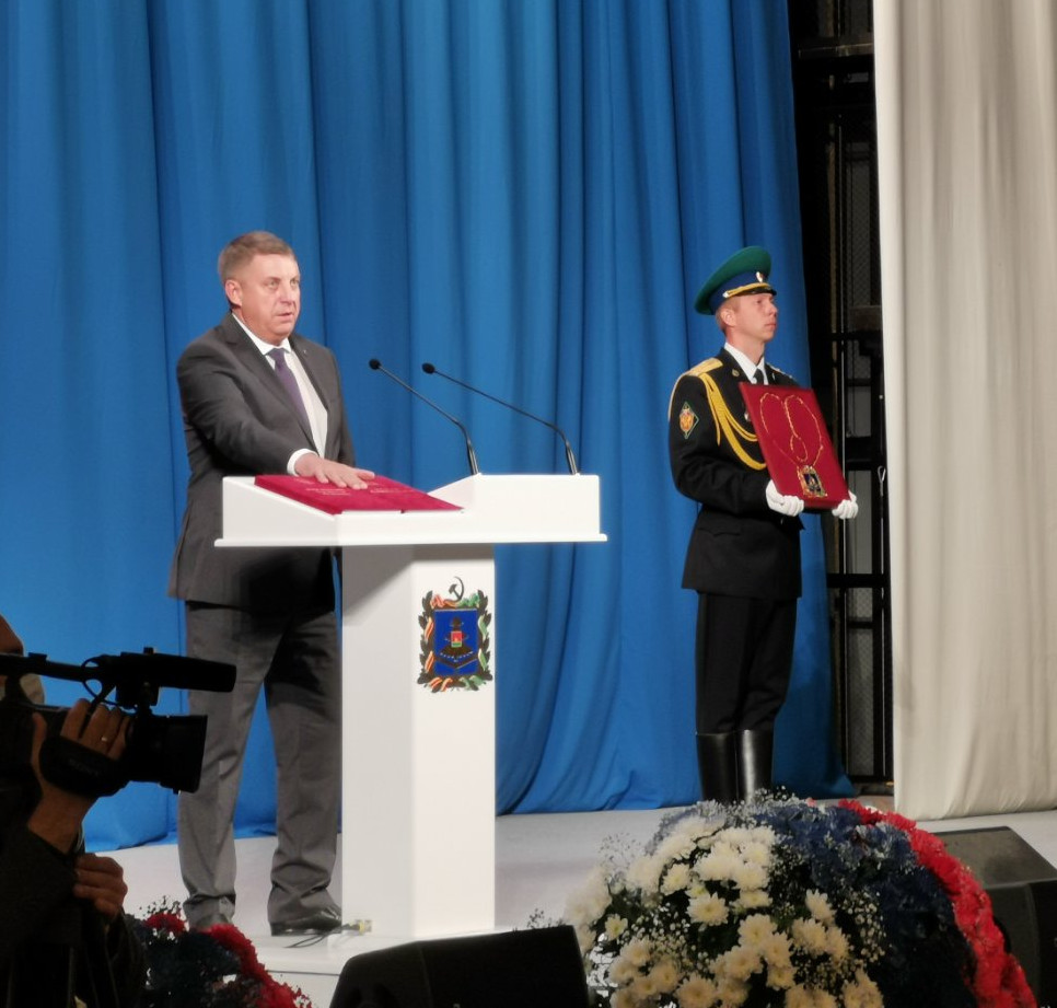 В Брянске состоялась торжественная церемония вступления в должность губернатора Брянской области Александра Богомаза. Парадный расчет под звуки оркестра внес в зал дворца культуры БМЗ Государственный флаг, флаг Брянской области, Устав Брянской области и знак Губернатора — символ губернаторской власти. Александр Богомаз принес присягу губернатора Брянской области. От имени и по поручению президента России Владимира Путина Александра Богомаза со вступлением в должность поздравил полномочный представитель президента в ЦФО Игорь Щёголев, пожелав успехов вновь избранному губернатору.