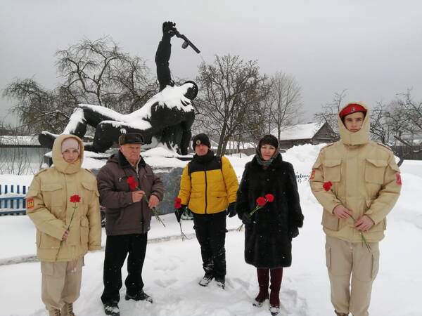 Вместе с преподавателями школы № 2, краеведом В. Немцовым и юнармейцами Андрей почтил минутой молчания всех погибших. Затем возложил цветы к могилам освободителей города Клетни.