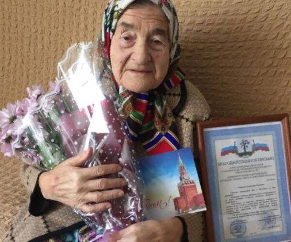 А. П.Пузик получила поздравления и от Владимира Путина. Ей передали поздравительную открытку с пожеланиями крепкого здоровья, хорошего настроения и пр.
