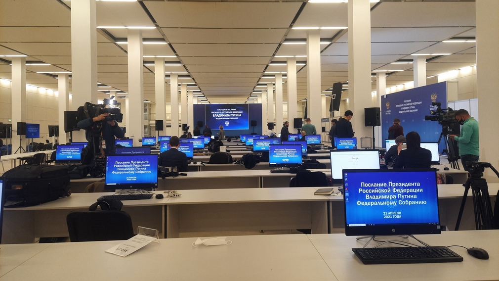 Сегодня, 21 апреля, в Центральном выставочном зале «Манеж» глава государства огласит ежегодное послание Федеральному Собранию. Как сообщает РИА «Стрела», брянские представители СМИ уже собрались в специальном зале для прессы.Для работы журналистов обеспечили компьютерной техникой. Действует масочный режим, установлены санитайзеры.