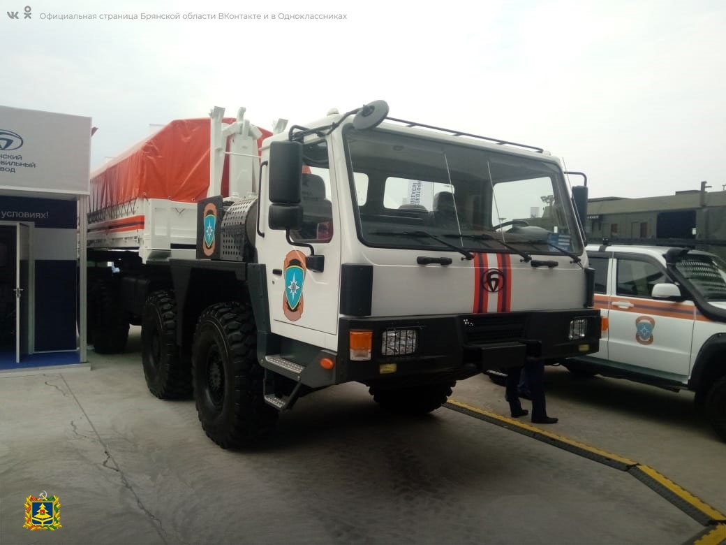 Брянский автомобильный завод (подразделение концерна «Алмаз-Антей») представил на мероприятии новейший стартовый аэродромный пожарно-спасательный автомобиль и габаритное шасси с колесной формулой 8х8 с системой «Мультилифт». Машина для МЧС с высокоэффективной системой пожаротушения отвечает требованиям международной организации гражданской авиации ICAO.