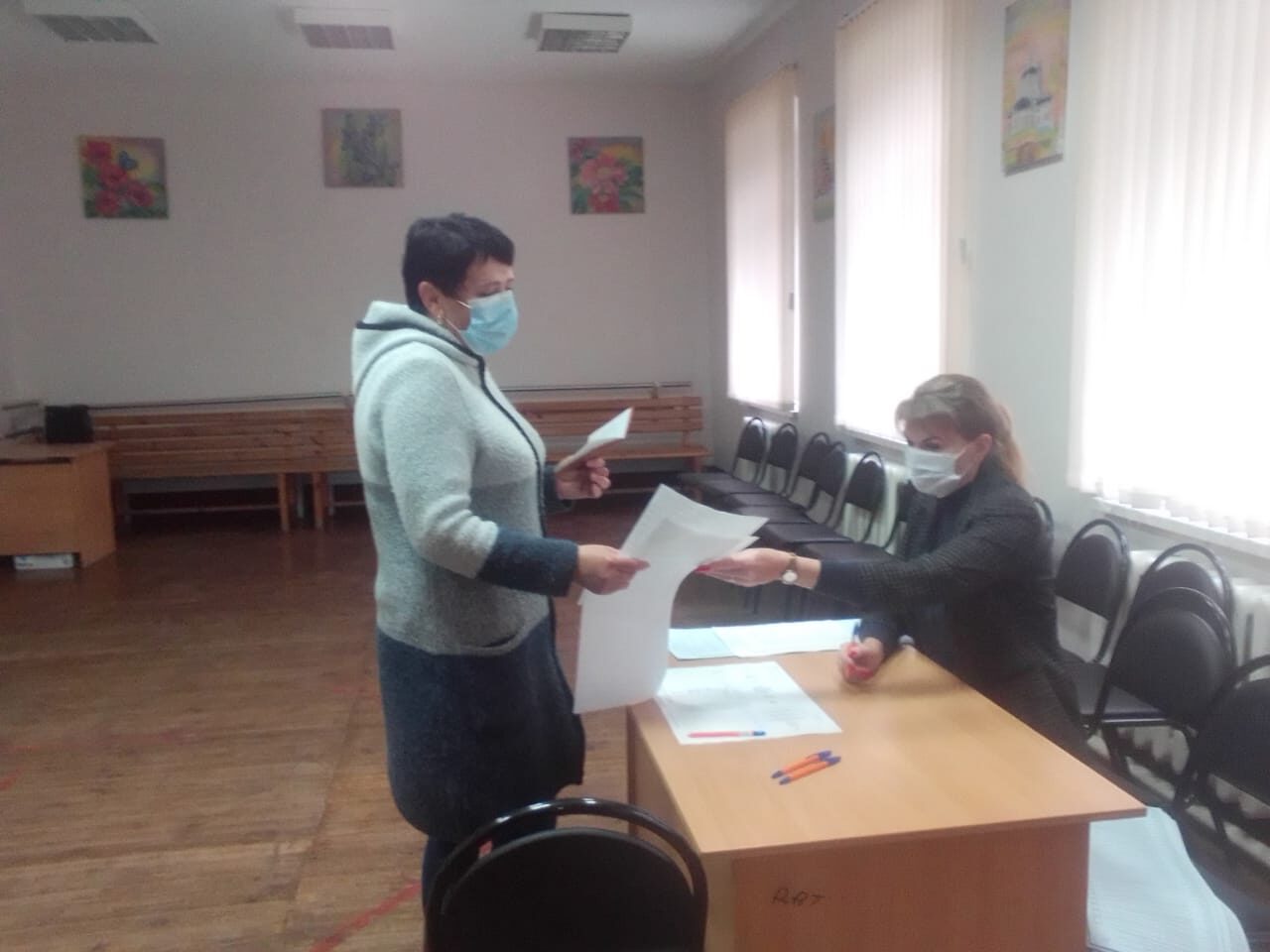 На участке № 32.14.003 учитель Дружбинской школы В.Ю.Михайлова стала первым голосующим.