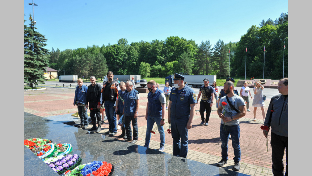 Участники мотопробега «Москва – Брест» почтили память героев и возложили цветы к памятнику советским воинам – водителям, погибшим в годы Великой Отечественной войны. Также они посетили «Партизанскую поляну», Курган Бессмертия и Площадь Партизан. Сегодня, 20 июня, байкеры отправились в Республику Беларусь.