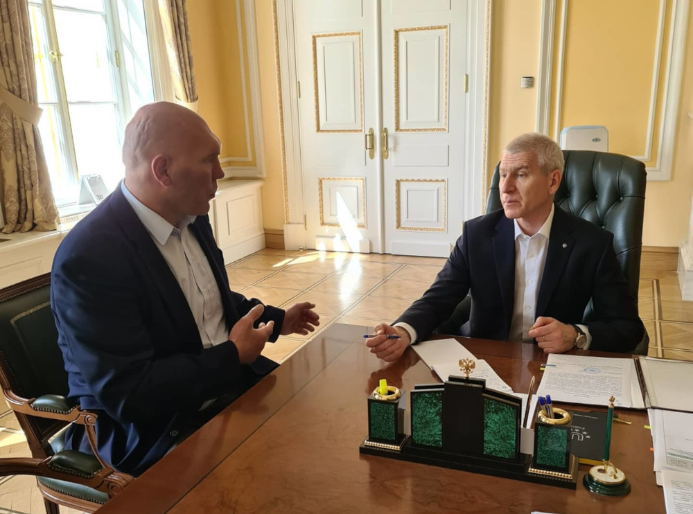 С министром спорта Олегом Матыцыным он обсудил перспективы строительства нового дворца спорта в городе Брянске.