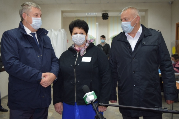 Губернатор Александр Богомаз и Валентин Суббот побывали на участках в селе Кокино №252 и №253.
