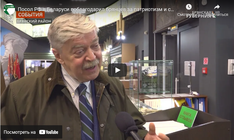 Также посол Российской Федерации в Республике Беларусь посетил мемориальный комплекс «Партизанская поляна». Вместе с губернатором Брянской области Александром Богомазом он возложил цветы к вечному огню. Для почётных гостей провели экскурсию, показали уникальные экспонаты музея: фотографии, документы, партизанские газеты, оружие и личные вещи партизан.