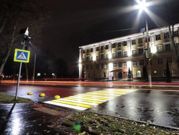 Лазерный проектор дополнительно подсвечивает пешеходный переход так, что «зебру» и пешеходов на ней видно издалека в любые погодные условия. Первый такой пешеходный переход в регионе был установлен на самой оживленной дороге в селе Толмачево.