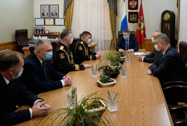 По информации «БрянскToday» состоялась встреча губернатора А.В. Богомаза и командира подводной лодки «Брянск», капитана 1 ранга Владимира Карева. Александр Васильевич приветствовал военнослужащих, отметив, что жители региона гордятся тем, что подводная лодка носит имя «Брянск».