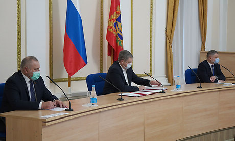 В обсуждении итогов работы участвовали губернатор Богомаз, председатель облдумы Валентин Суббот, главный федеральный инспектор по области Андрей Дьячук.