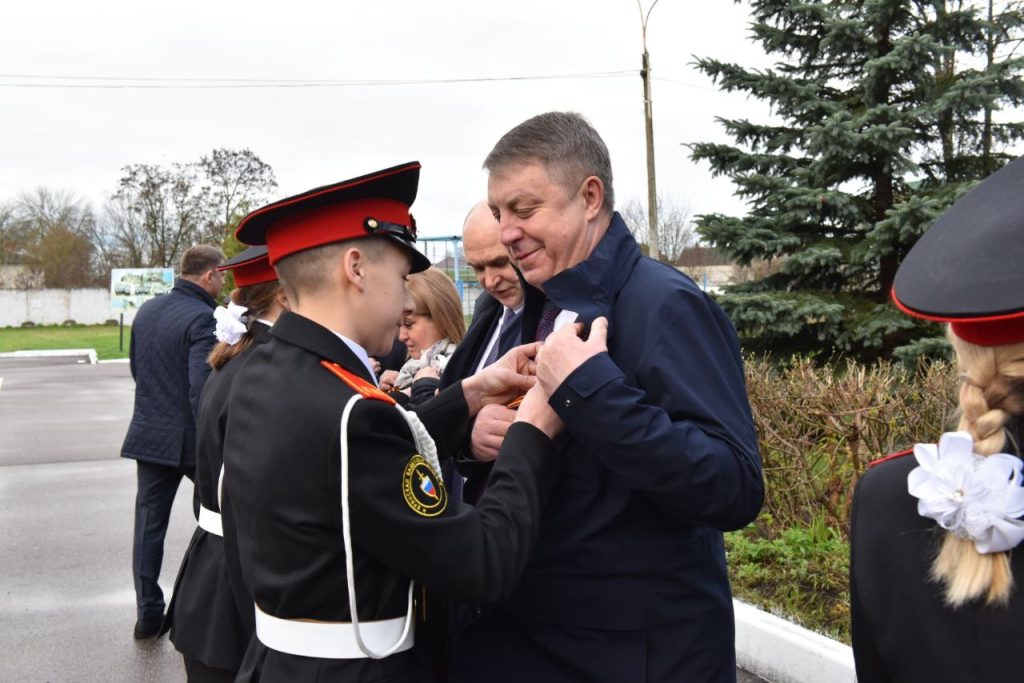 Георгиевскую ленточку из рук брянского кадета Родиона Вакулы получил и сам Александр Богомаз, сообщив на своей странице в соцсети «ВКонтакте», что будет носить ее с гордостью.