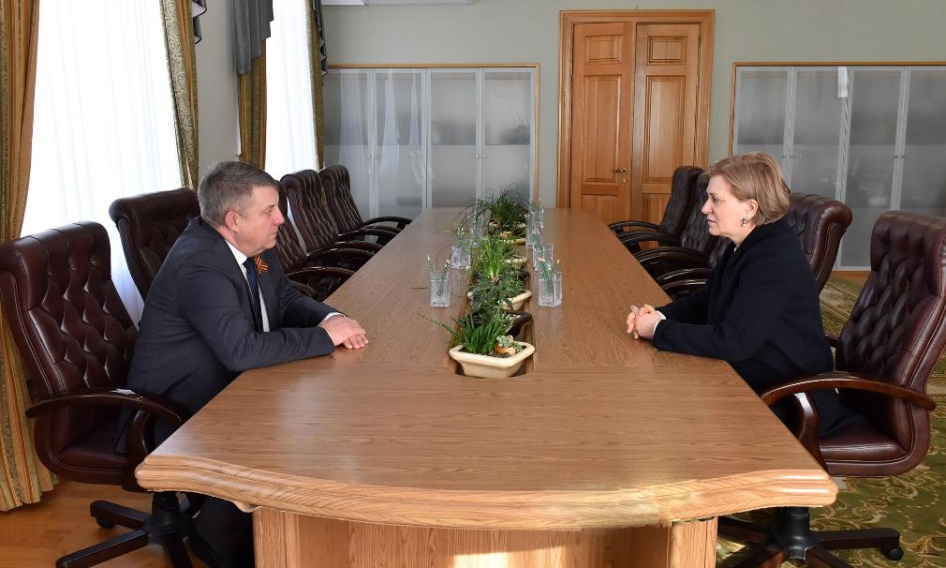 Глава региона Александр Богомаз 28 апреля встретился с руководителем Федеральной службы по надзору в сфере защиты прав потребителей и благополучия человека Анной Поповой. Об этом сообщает РИА «Стрела».