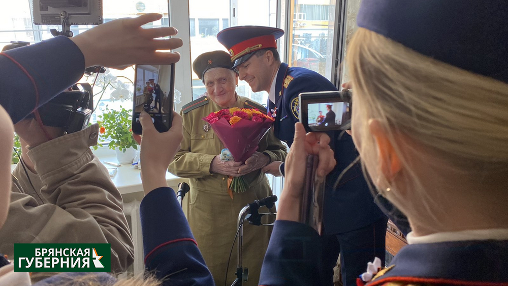 И 7 мая поздравления предназначались для Полины Сергеевой, ветерана Великой Отечественной войны. Поздравить ее пришли активисты, волонтёры, Росгвардия, представители следственного комитета и юнармии.