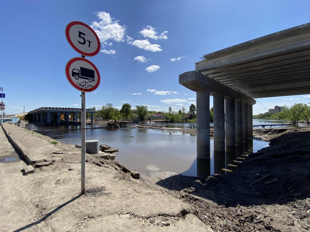 Затянувшийся паводок отсрочил установку 7-й и 8-й опор в русле реки. Полностью работы планируют завершить в марте будущего года.