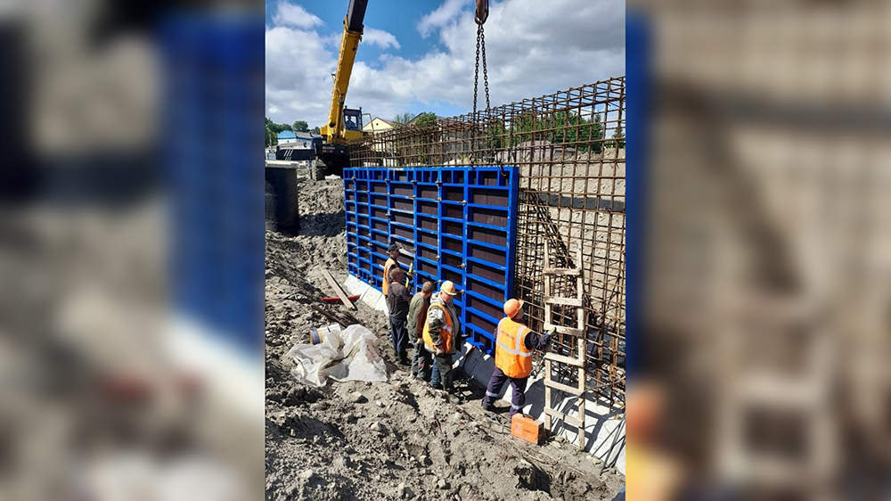Ранее рабочие делали шкафную стенку устоя моста. Подрядчик «Орёлдорстрой» начал устраивать опалубку. И вскоре начнёт бетонировать подпорную стенку.