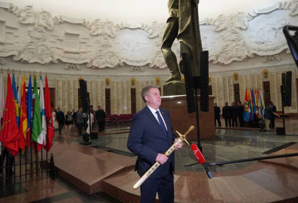 В беседе с корреспондентом телеканала «Звезда» он отметил, что красота и тяжесть врученного меча – это не главное. Важно, что он символизирует заслуги жителей Брянщины, которые в годы войны внесли свою лепту в Великую Победу.