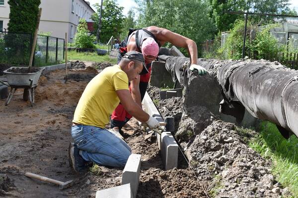 Сейчас строители готовят основания под будущие асфальтовые дорожки. Уже установлены бетонные бордюры.