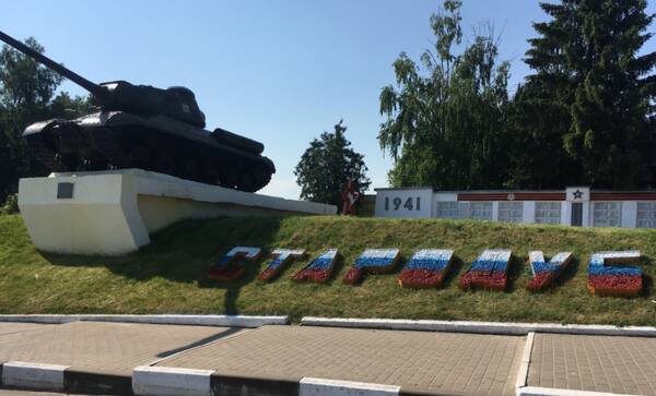 Сотрудники коммунальной службы у подножия памятника танкистам обновили инсталляцию «Стародуб», придав буквам цвета российского триколора.