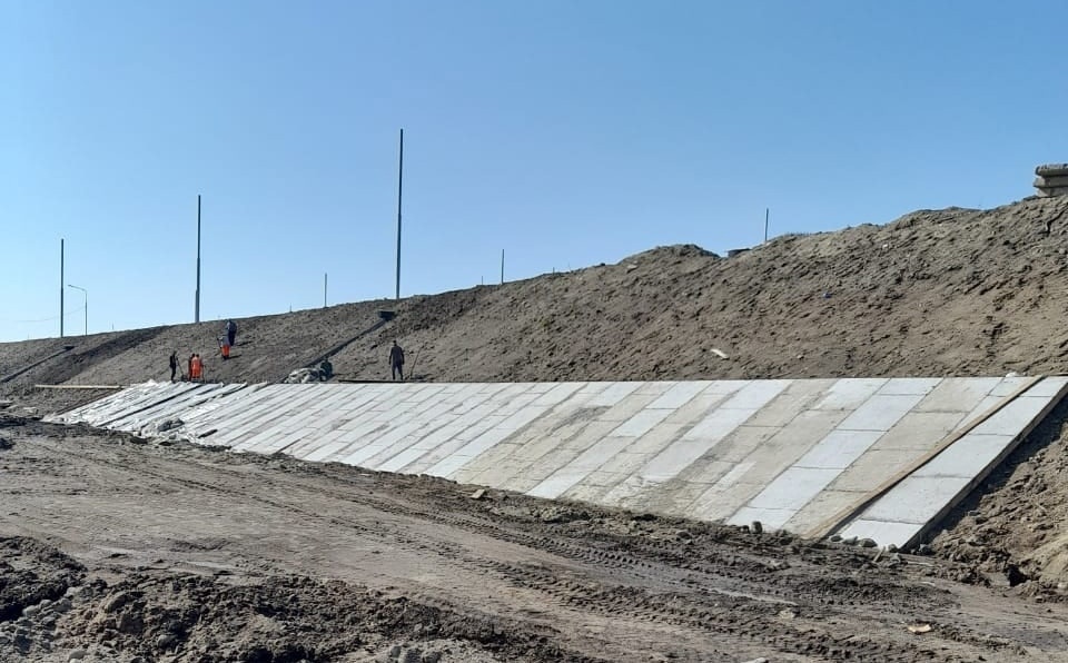 Строители уже частично выполнили устройство подпорной стенки со стороны КЗ «Дружба». Продолжаются работы по укреплению откосов насыпи на подходах к возводимому Славянскому мосту через реку Десну.