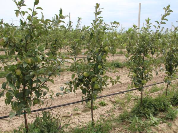 На 35 гектарах размещены молодые деревца яблонь в ООО «Сельхозник» Брасовского района. Их здесь выращивают по суперинтенсивной технологии.