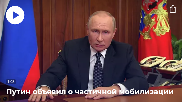 Владимир Путин объявил о частичной мобилизации