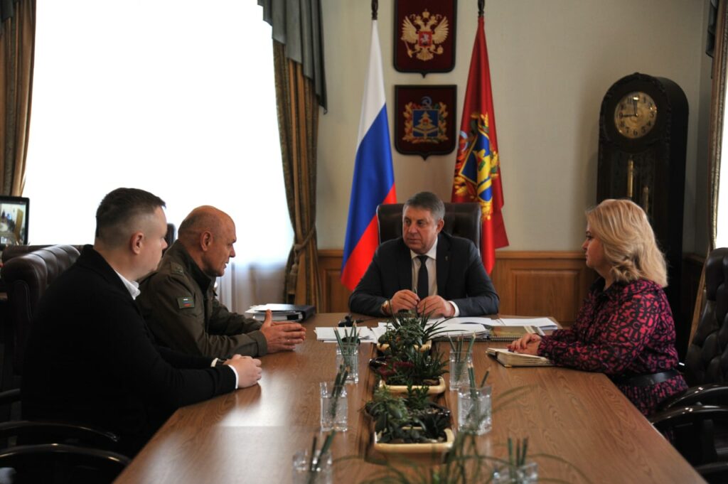 Глава региона Александр Богомаз встретился с первым заместителем начальника Главного Штаба «Юнармии», заместителем председателя Всероссийской общественной организации ветеранов «Боевое братство», полковником, ветераном боевых действий Виктором Кауровым.