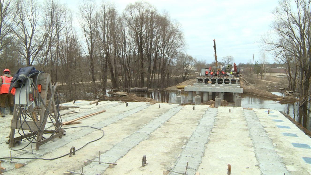 После окончания паводка здесь установят последнюю опору в русле реки и приступят к монтажу последнего пролета. Новый мост обеспечит подъезд к селам Смолевичи, Песчанка и другим, с общей численностью населения около 1000 человек. Работы на объекте проводятся в рамках нацпроекта «Безопасные качественные дороги», начались они еще в прошлом году.