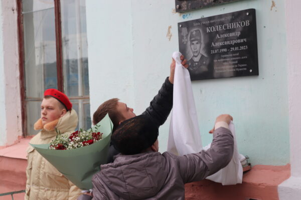 6 апреля на здании филиала Трубчевского политехнического техникума в городе Севске увековечили память погибшего при исполнении воинского и служебного долга выпускника – Александра Александровича Колесникова. На митинге присутствовали мать Александра Колесникова Надежда Николаевна и его брат Евгений.