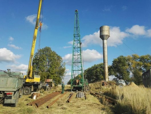 Фото: из архива «Земли трубчевской». Строительство артезианской скважины в Городцах, 2019 год.