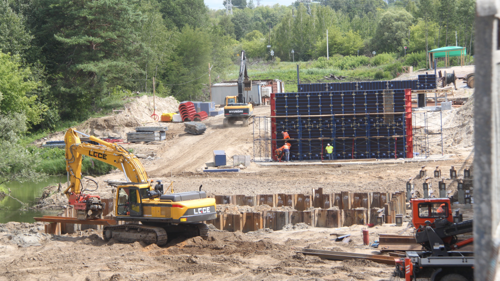 Подрядчик ООО «Дорстрой 32» погрузил 336 свай всех опор моста. Сейчас рабочие устанавливают арматурные каркасы и бетонируют конструкции опор. Также установлены 48 свай временного моста, ведётся погружение шпунта.