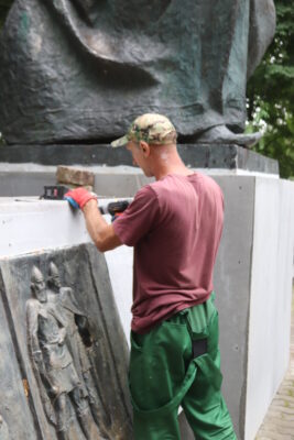 В Трубчевском городском парке им. М. Горького продолжаются работы по реконструкции памятников, начатые весной нынешнего года, с ремонта постамента, на котором установлен бюст Максиму Горькому, чьим именем названо любимое место отдыха трубчан и гостей города.