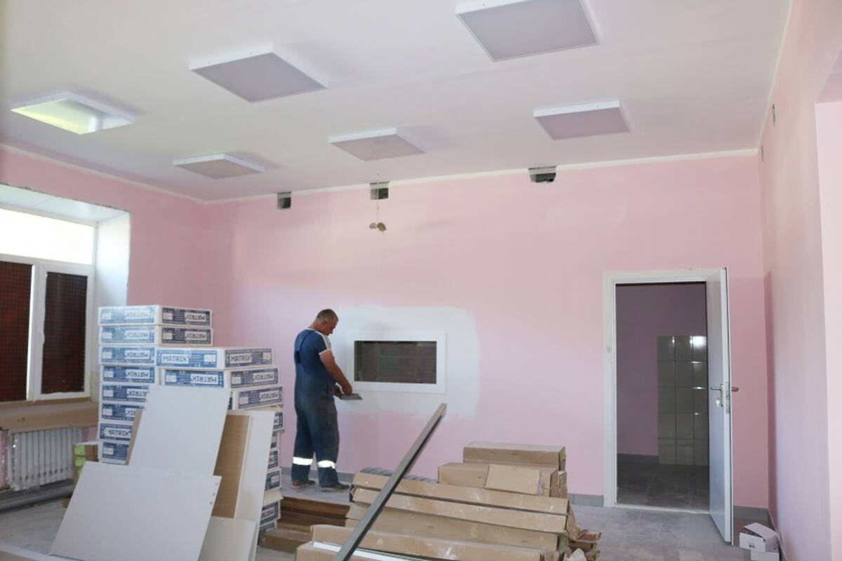 На объекте завершен монтаж электропроводки. Оперативно ведутся отделочные работы в кабинетах и в лечебном корпусе