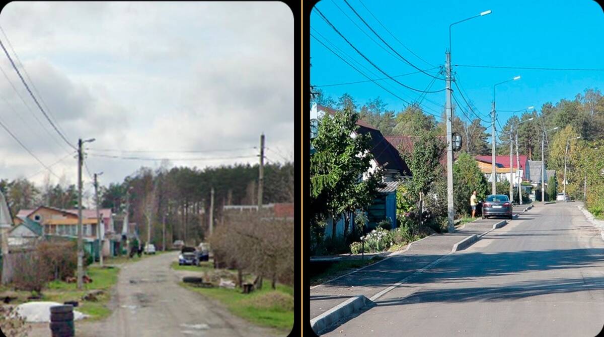 Было уложено асфальтобетонное покрытие от улицы Зеленой до дома №62, обустроено новое электроосвещение. На дороге есть искусственные неровности и дорожные знаки.