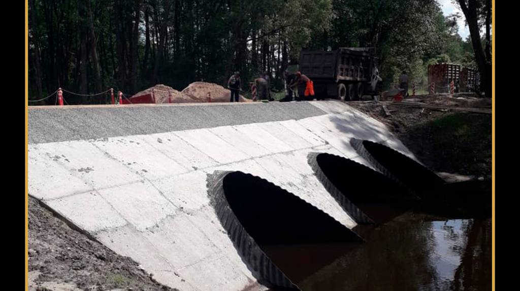 Рабочие из «Вестроуда» смонтировали трубы с бетонными лотками, сделали площадки входа и выхода труб и основание насыпи.