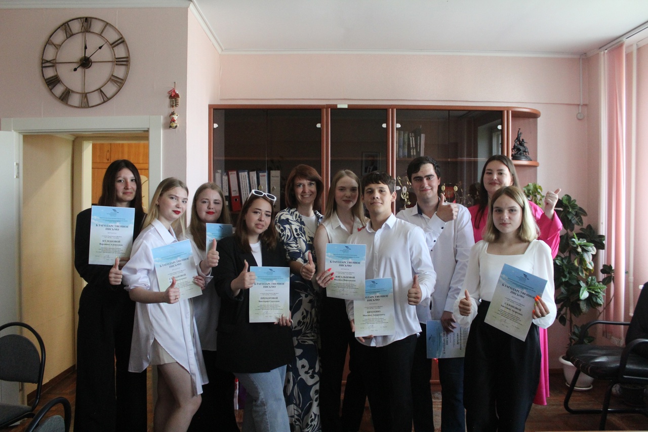 Как сказала директор филиала Ирина Владимировна Миронова, вручая благодарственные письма за подписью ректора ОГУ им.И.С.Тургенева А.А.Федотова, это одна из серьезных наград в жизни студентов. Это – признание их заслуг.