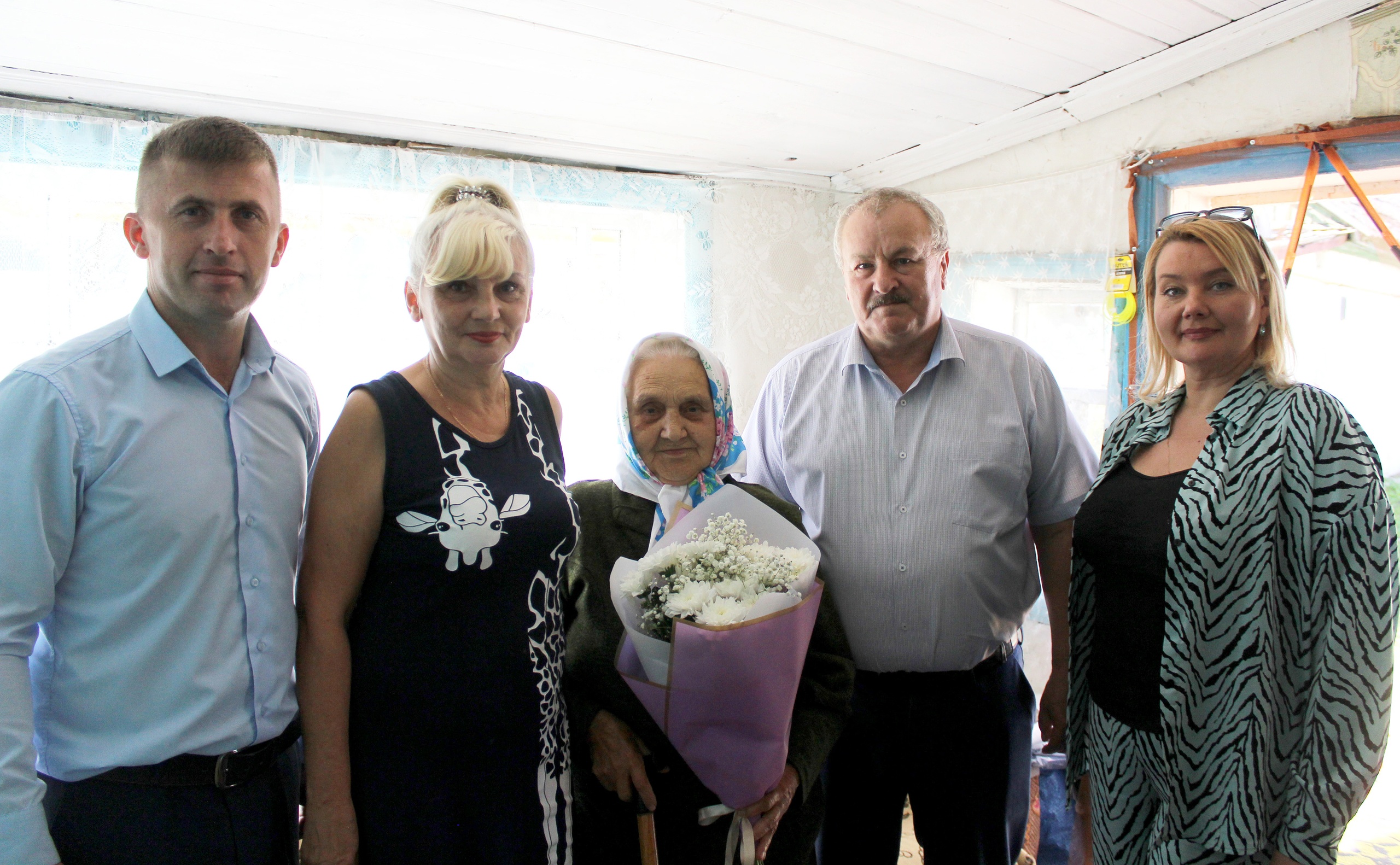 Со столь знаменательной датой именинницу поздравили глава Карачевского района Александр Ходотов, первый заместитель главы районной администрации Сергей Шкуркин, начальник отдела культуры, молодежной политики, физкультуры и спорта Лилия Рылова. Гостей женщина встречала в хорошем настроении.