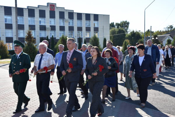 В солнечный, праздничный день на площади Советской г. Мглина состоялась церемония возложения венков и цветов. Участие в ней приняли руководители района: исполняющий обязанности главы администрации Александр Казеко, глава района Наталья Воликова, заместители главы, главы администраций сельских поселений, представители трудовых коллективов, силовых ведомств, общественных организаций, юнармейцы. К подножию памятников были возложены венки и цветы. Под звуки метронома память всех, кто сложил головы в годы Великой Отечественной войны, почтили минутой молчания.