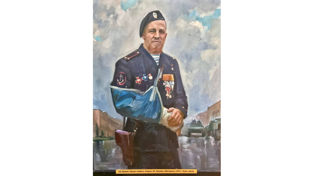 На ней представлены картины художников Алексея Крюкова и Максима Фаюстова, которые несколько раз бывали в зоне боевых действий.Оба художника – последователи русской реалистической школы живописи, продолжатели славных традиций русских и советских военных художников. Они считают, что художник обязан служить народу и изображать важные события современности.