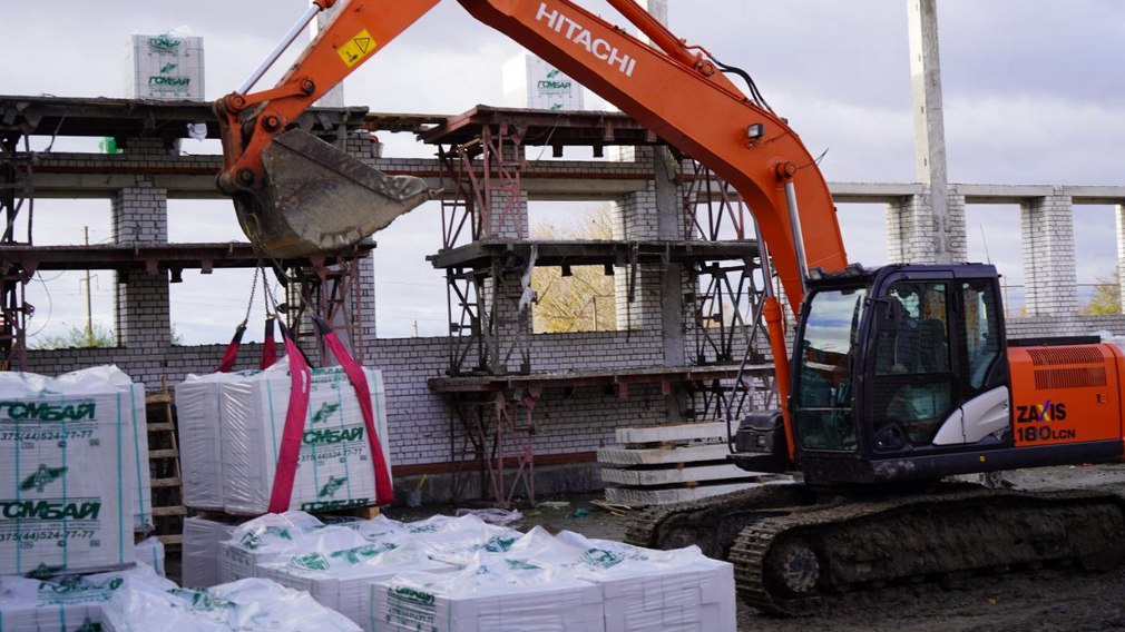Строители приступили к работе полтора месяца назад, но уже выполнен большой объем: демонтированы старые конструкции, частично разобрали первоначальную кладку стен, заменили и усилили фундамент, ведется кирпичная кладка стен.