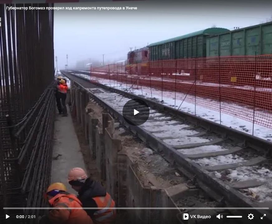 в Унече Брянской области продолжается капитальный ремонт путепровода. Об этом сообщает «Брянская губерния».