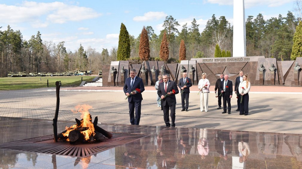 Глава региона и гости из Гомельской области почтили память погибших в годы Великой Отечественной войны. Они посетили мемориальный комплекс «Партизанская поляна», где возложили цветы.